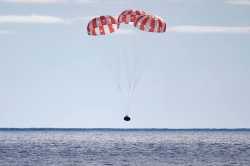 The discussion centers on a recent lunar mission, with claims of a "victory" for Trump and the Western Hemisphere. Some users dismiss the mission as a mere "sightseeing tour" without a lunar landing, questioning the use of taxpayer money and the existence of low gas prices on the moon. Others suggest the EU provided assistance, while a minority viewpoint questions the reality of the moon itself.